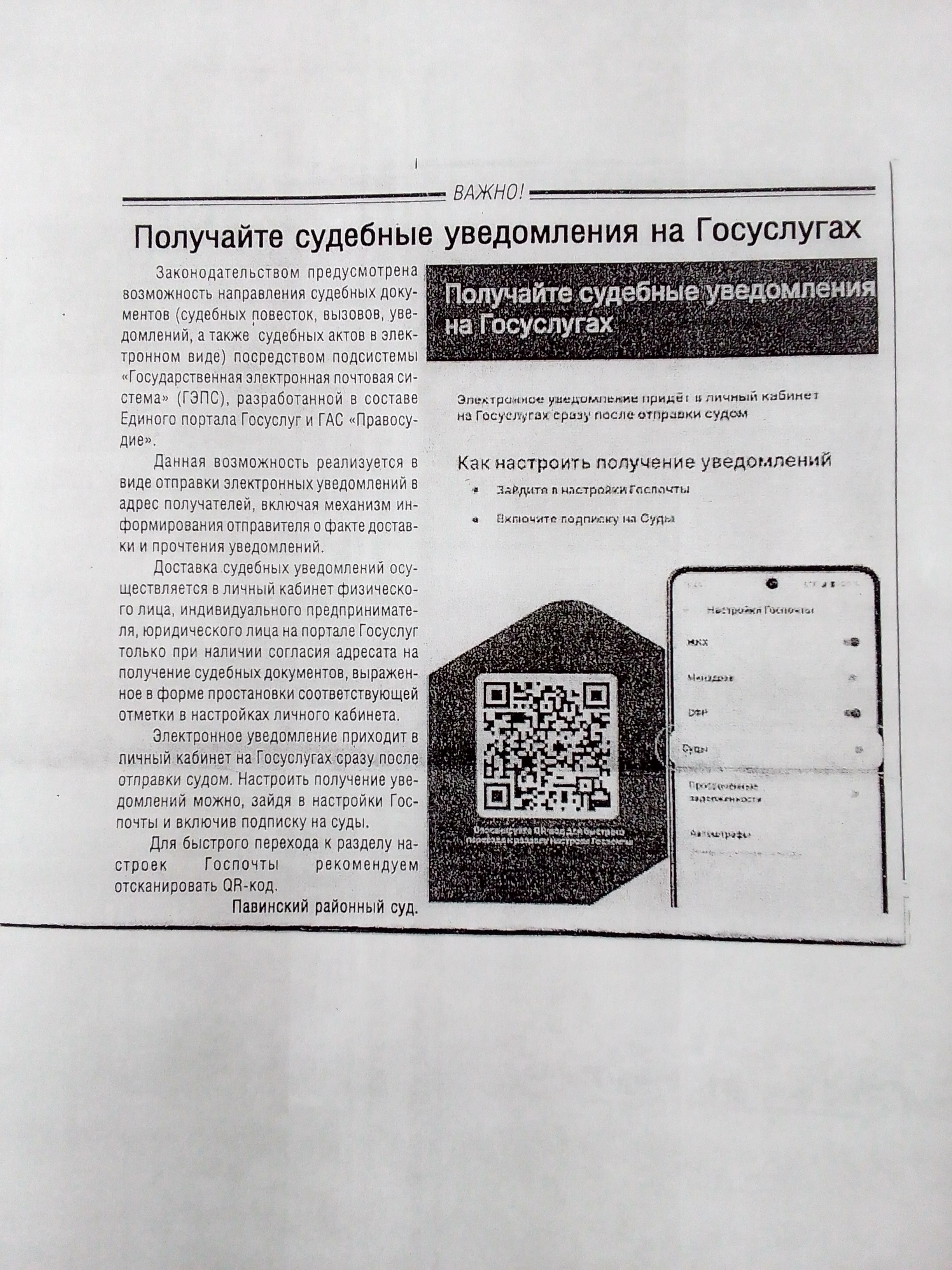 | Получайте судебные уведомления на госуслугах | версия для печати |
