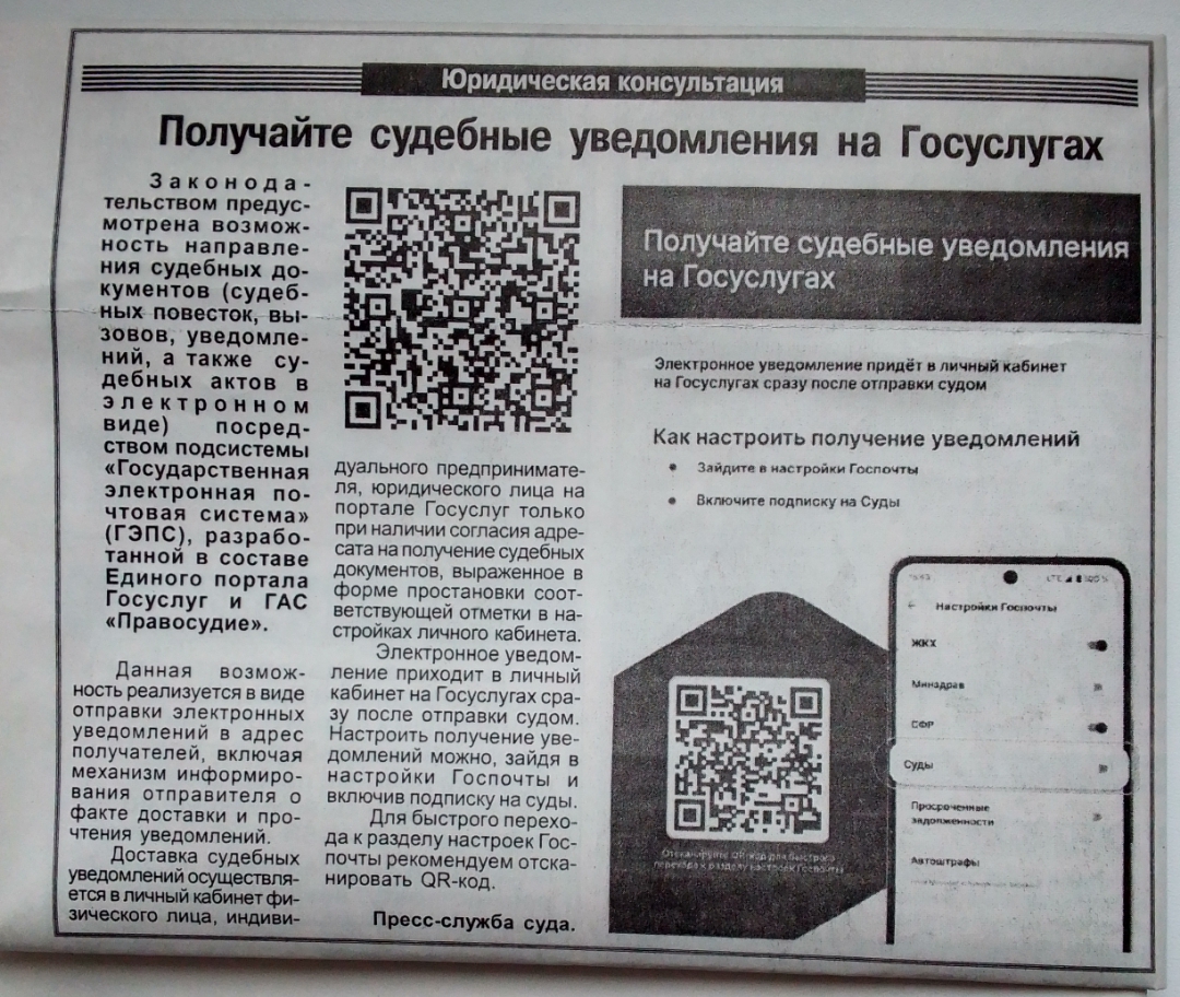 | Получайте судебные уведомления на госуслугах | версия для печати |