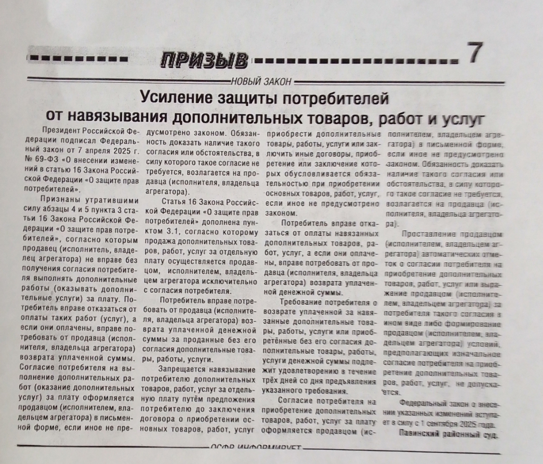 | Усиление защиты потребителей от навязывания дополнительных товаров, работ и услуг | версия для печати |