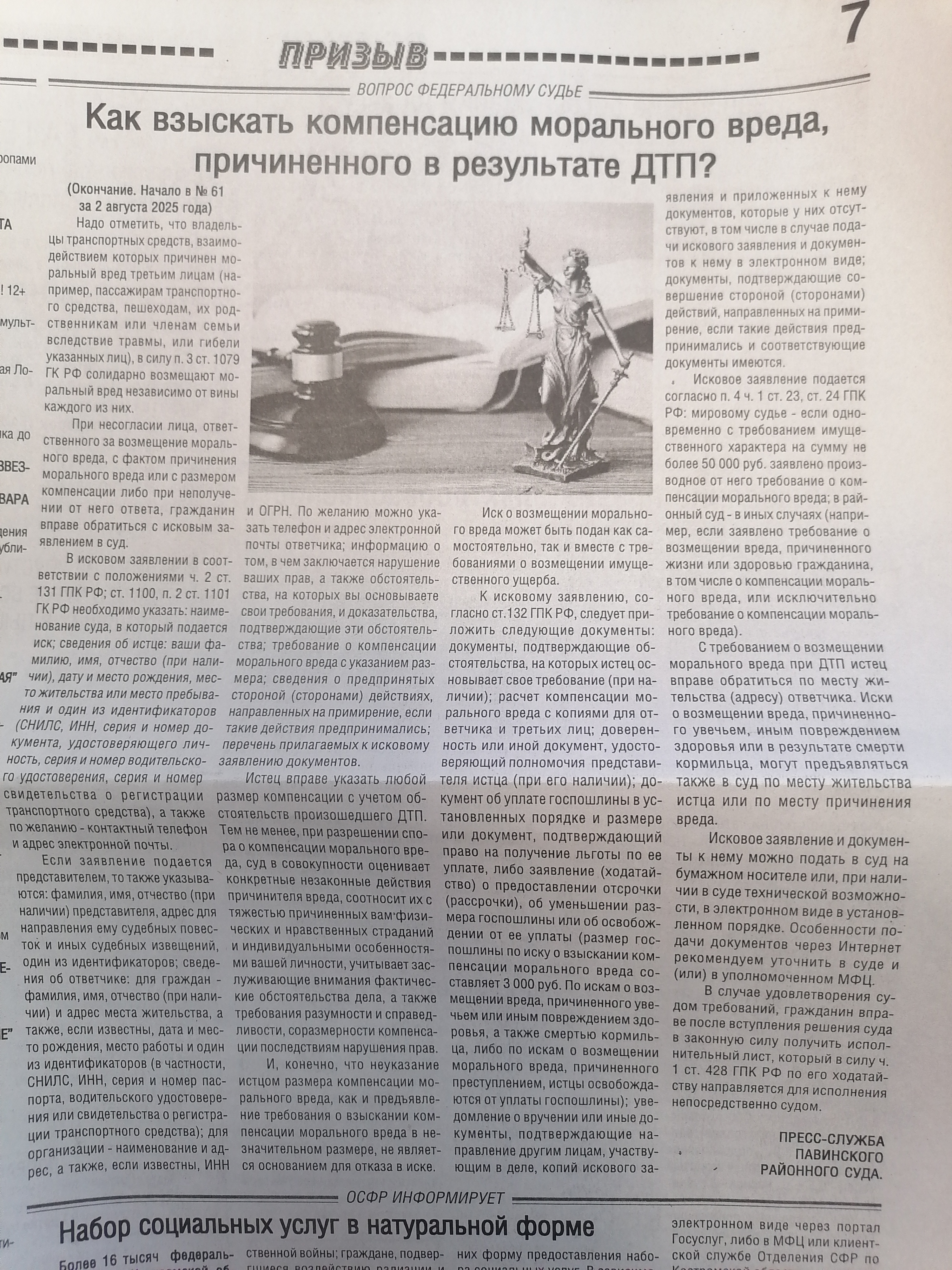 | Как взыскать компенсацию морального вреда, причиненного в результате ДТП? газета "Призыв" (продолжение) | версия для печати |